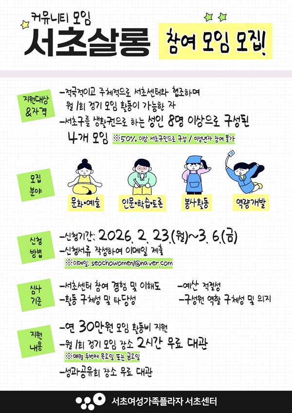2026년 커뮤니티 모임, 서초살롱 참여 모임 모집
