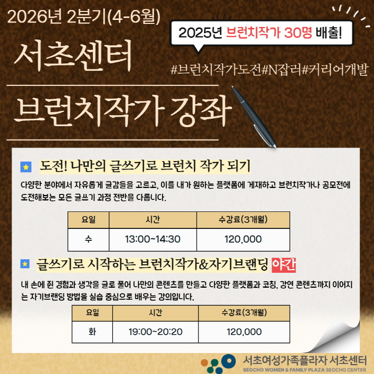 서초센터에서 진행한『도전! 나만의 글쓰기로 브런치 작가 되기』과정 수강생분들이